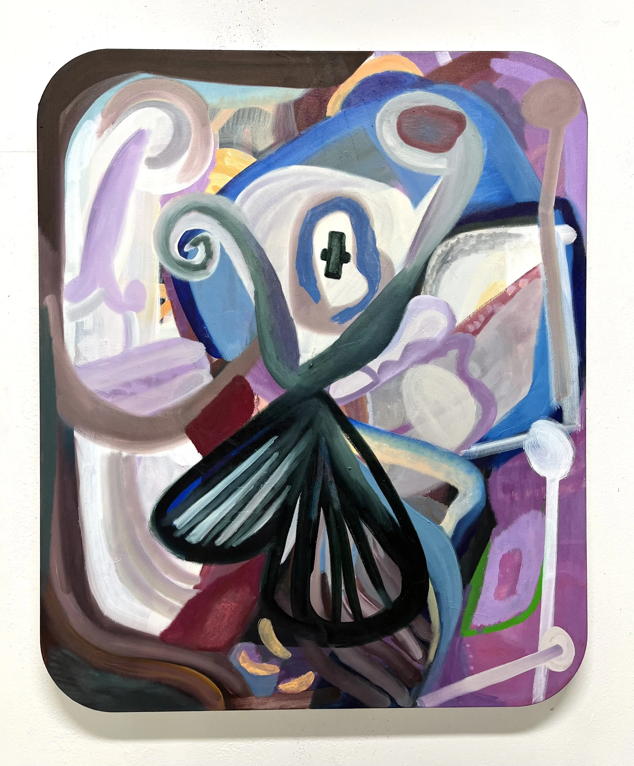 Spring Totem, 2026. 36x30 in. Oil on shaped canvas.